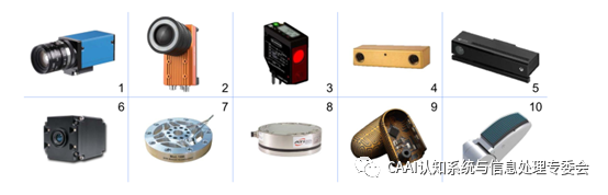 圖2 應(yīng)用在機(jī)器人操控任務(wù)中的典型傳感器(1)G速工業(yè)相機(jī)(2)智能工業(yè)攝像頭(3)激光距離傳感器(4)立體相機(jī)(5)結(jié)構(gòu)光傳感器(6)飛行時(shí)間相機(jī)(7)關(guān)節(jié)扭矩傳感器(8)腕力/扭矩傳感器(9)手指壓力傳感器(10)手指觸覺陣列