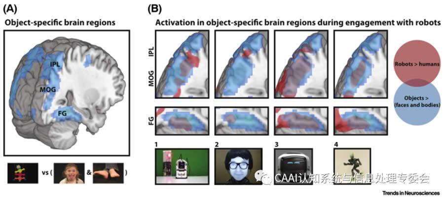 該L域的一項(xiàng)初步研究[5]探討了動(dòng)作觀(guān)察網(wǎng)絡(luò)(AON)的靈活性,得出的結(jié)論表明,該網(wǎng)絡(luò)的D葉,運(yùn)動(dòng)前和中顳葉皮質(zhì)的部分對(duì)觀(guān)察人類(lèi)抓握和操縱物體都有反應(yīng)。這些發(fā)現(xiàn)得到了腦電圖(EEG)研究的證實(shí),該研究表明無(wú)論是對(duì)機(jī)器人還是人類(lèi),其在感覺(jué)運(yùn)動(dòng)或AON區(qū)域都有抑制作用[6]。過(guò)去的腦成像研究表明,人類(lèi)在觀(guān)察機(jī)器人[7]表達(dá)情感以及機(jī)器人與其他人的互動(dòng)時(shí),確實(shí)表現(xiàn)出了人的感知網(wǎng)絡(luò)(PPN)的參與。當(dāng)觀(guān)察人類(lèi)和機(jī)器人在模擬疼痛時(shí),或試圖破譯機(jī)器人[2]的意圖時(shí),可能會(huì)出現(xiàn)類(lèi)似大腦的反應(yīng),這種情況仍然是一個(gè)活躍的研究L域。