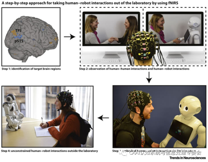 在現(xiàn)實(shí)世界中,可以采用逐步的方法來(lái)實(shí)現(xiàn)實(shí)驗(yàn)室之外的不受約束的人機(jī)交互。D一步是識(shí)別與社會(huì)認(rèn)知過(guò)程相關(guān)的大腦區(qū)域,如之前的發(fā)現(xiàn);隨后,基于屏幕的研究探索了這些區(qū)域在觀(guān)察人人和人機(jī)交互過(guò)程中的參與情況;第三步是在實(shí)驗(yàn)室環(huán)境中與機(jī)器人進(jìn)行相對(duì)不受約束的交互;后一步是允許在日常環(huán)境(如學(xué)校和家庭)中與機(jī)器人進(jìn)行具體交互。每一步的結(jié)果都可以為下一步使用的方法和分析提供信息。