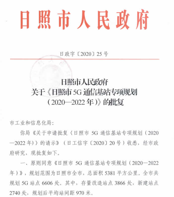 《日照市5G通信基站專項規(guī)劃(2020-2022年)》