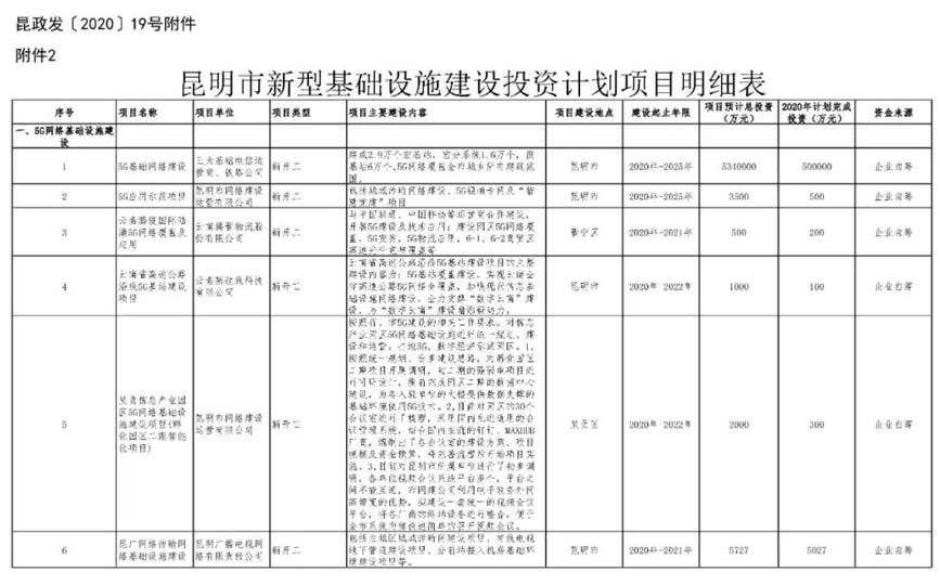 云南省已梳理形成了D一批“新基建”項(xiàng)目清單,謀劃項(xiàng)目665個(gè),項(xiàng)目總投資3776億元。各級政府連續(xù)3年每年統(tǒng)籌安排100億元,其中省財(cái)政每年安排10億元,用于支持新型基礎(chǔ)設(shè)施建設(shè)