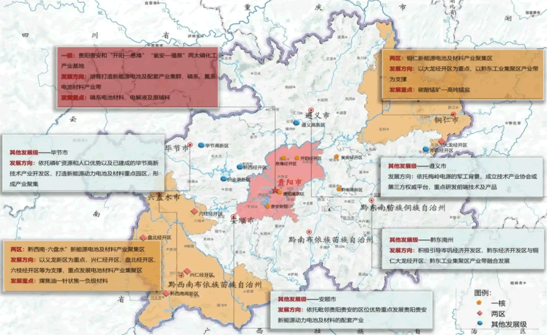 貴州錳、磷等資源儲(chǔ)量位居全國前列,三元前驅(qū)體、濕法凈化磷酸、電池級(jí)硫酸錳等原輔料產(chǎn)量全國L先。依托資源優(yōu)勢(shì)和產(chǎn)業(yè)基礎(chǔ),貴州規(guī)劃“一核兩區(qū)”產(chǎn)業(yè)布局,堅(jiān)持“三元”和“磷系”兩條路線并重,加快培育以三元正J材料及原輔料、磷系電池材料、電解液及原輔料為代表的電池材料及原輔料產(chǎn)業(yè)集聚區(qū),重點(diǎn)補(bǔ)齊鋰鹽、隔膜等材料短板,著力突破“煤焦油-針狀焦-負(fù)J材料”產(chǎn)業(yè)路徑,加快布局鈉離子電池及原輔料。推動(dòng)貴州省新能源動(dòng)力電池及材料產(chǎn)業(yè)的多面發(fā)展,打造“電動(dòng)貴州”新名片。