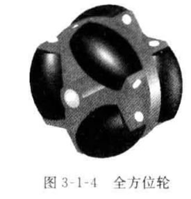 全方位輪種類很多,本節(jié)以圖3-1-4中所示的全方 位輪為例進(jìn)行討論,它的組成是在輪轂的外緣上設(shè)置有 可繞自己的軸旋轉(zhuǎn)的輥?zhàn),且均勻分布于輪轂周圍,這 些輥?zhàn)虞S線(E) 和輪轂軸線(S,) 的夾角a 為90°。該麥 卡納姆輪由雙排自由滾動的輥?zhàn)咏M成,使得輪子在地面 滾動時形成連續(xù)的接觸點(diǎn)。而在運(yùn)動時輪轂是驅(qū)動機(jī) 構(gòu),輥?zhàn)邮菑膭訖C(jī)構(gòu),因此在本節(jié)中主動輪由圖3-1-5 所示車輪輪轂與邊沿輥?zhàn)咏M成,從動輪為車輪輥?zhàn),? 動輪、從動輪與地面接觸點(diǎn)均為輥?zhàn)优c地面的接觸點(diǎn)。