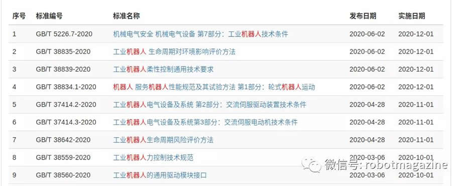6月2日,4項(xiàng)與機(jī)器人相關(guān)的新增國家推薦標(biāo)準(zhǔn)發(fā)布,這4項(xiàng)標(biāo)準(zhǔn)均從2021年1月1日開始實(shí)施。