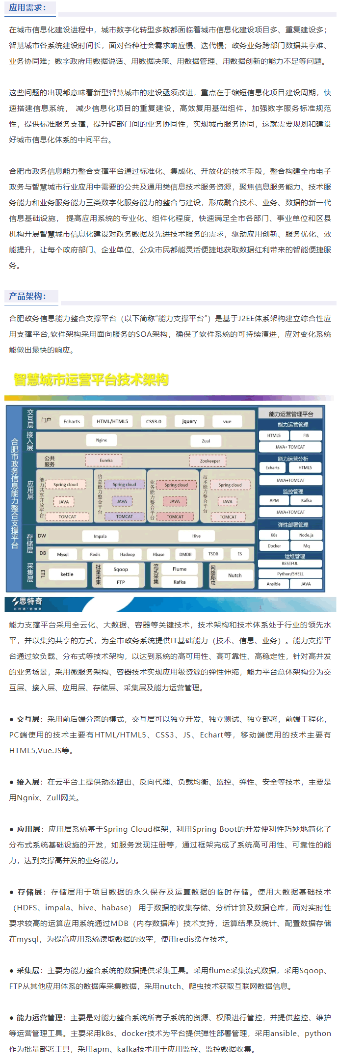 2、政務(wù)服務(wù)賦能。能力支撐平臺正在著力構(gòu)建包括信息能力、業(yè)務(wù)能力、技術(shù)能力在內(nèi)的2000多類信息技術(shù)服務(wù)能力, 旨在為各城市管理者、城市居民、城市服務(wù)機(jī)構(gòu)提供惠民、強(qiáng)政、興業(yè)的服務(wù)應(yīng)用支撐。截至目前,能力支撐平臺累計能力調(diào)用總次數(shù)達(dá)460多萬次,為不動產(chǎn)登記、數(shù)字蜀山、住房保障、合肥通等重大專項應(yīng)用提供24小時不間斷業(yè)務(wù)賦能。助力加快推進(jìn)政務(wù)信息技術(shù)資源整合與共享應(yīng)用,助力初步實(shí)現(xiàn)全市基礎(chǔ)信息服務(wù)資源一體化管理格局,大大減少城市服務(wù)申請及辦理的時間、精力、物力和人力成本,跑腿次數(shù)減少了, 提交材料減少了,辦事時間縮短了,大大提升了城市服務(wù)滿意度和獲得感。