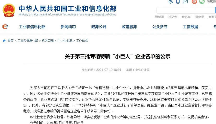 十四五時期我國將推動形成一百萬家創(chuàng)新型中小企業(yè),十萬家專精特新中小企業(yè),一萬家專精特新小巨人企業(yè),財政重點支持500家以上小巨人企業(yè)